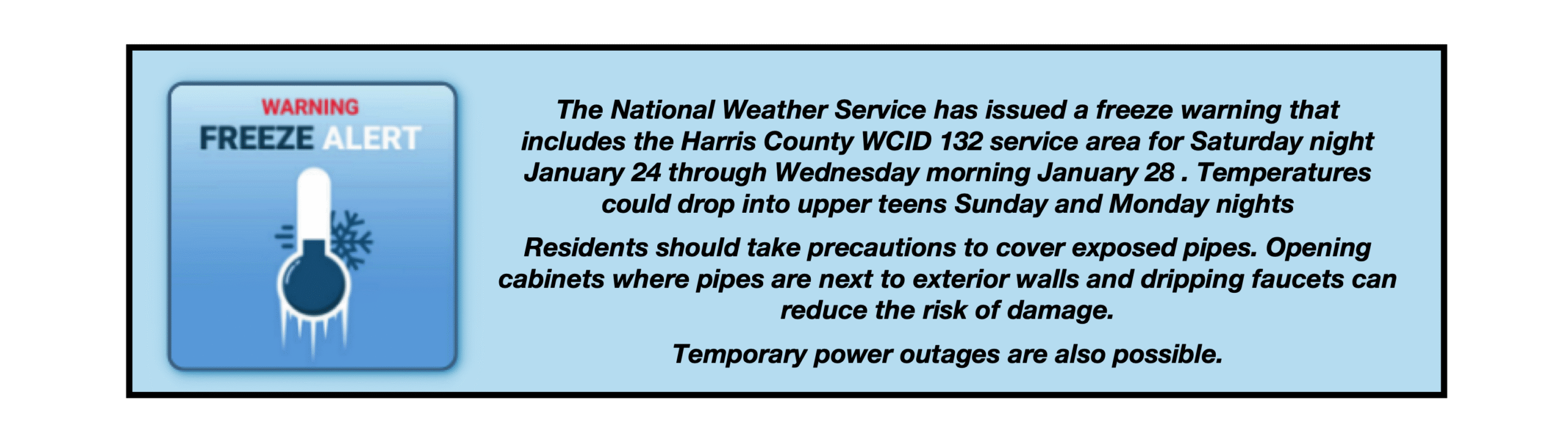 For more than 50 years, Harris County WCID 132 has provided water, sanitary sewer and drainage facilities to customers inside its boundaries. (See District boundaries here.)