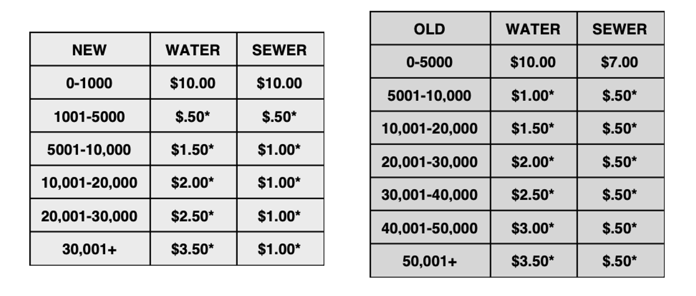 The new pricing reflects increasing maintenance and operating costs for the services provided to the District’s 4,500 customers. The last rate revision occurred in 2006. Pricing tiers were adjusted in 2012.